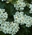 Die weißen Blüten des Zweigriffligen Weißdorn erscheinen in Rispen von Mai bis Juni.